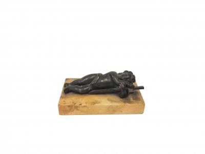 Bronze à patine brune et marbre jaune de Sienne, L 13 cm
