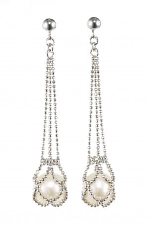 3013. *Pendants d'oreilles retenant une perle (D env. 9,5 mm) enfermée...