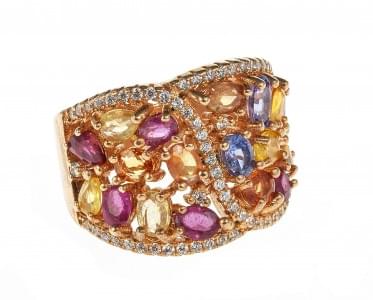 3018. *Bague bandeau ajourée semi-pavée de saphirs multicolores et de...