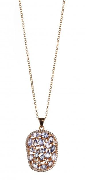 3020. *Pendentif ajouré pavé de tanzanites taille ovale et poire rehau...