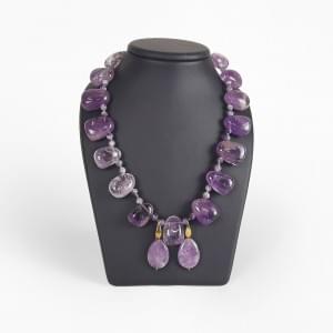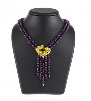 3154. *Collier de deux rangs de perles d'améthystes retenant un motif...