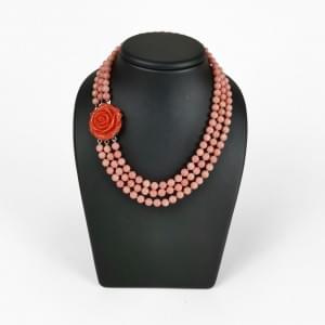 3032. Collier composé de trois rangs de perles de corail terminé par u...