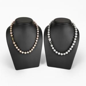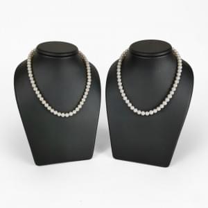L'un composé de trois rangs de perles d'eau douce et l'autre à m...