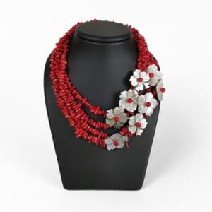 3040. Collier composé de quatre rangs de bâtonnets de corail rehaussés...