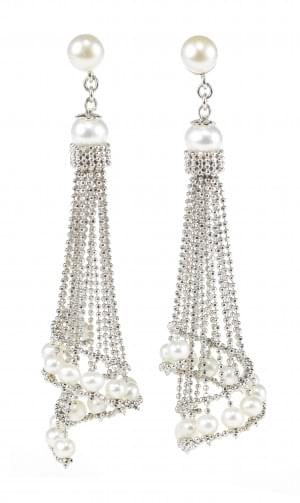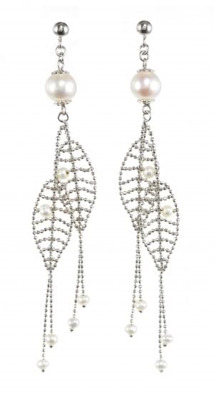 3045. *Pendants d'oreilles sertis de perles retenant des motifs de feu...