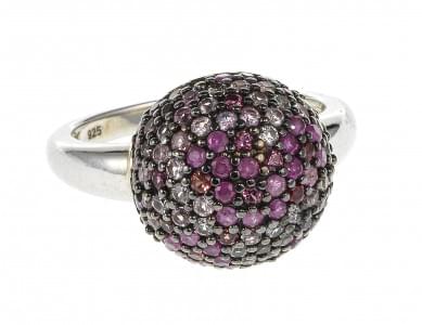 3046. *Bague boule pavée de saphirs multicolores