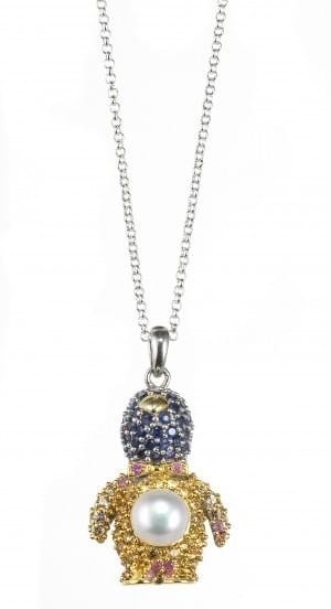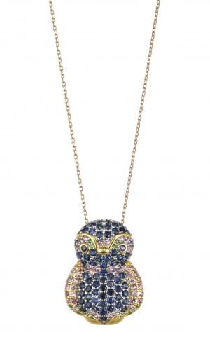 3047. *Pendentif à motif de pingouin pavé de saphirs multicolores