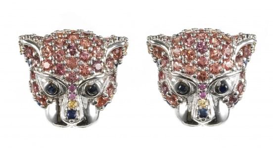 3003. *Boucles d'oreilles à motifs d'éléphants pavés de saphirs multic...