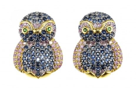 3050. *Boucles d'oreilles à motifs de pingouins pavés de saphirs multi...