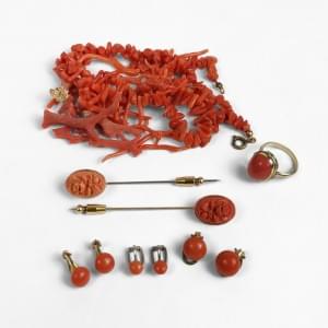 3028. Lot de deux colliers, l'un multi-rangs de corail rouge et l'autr...