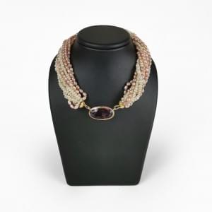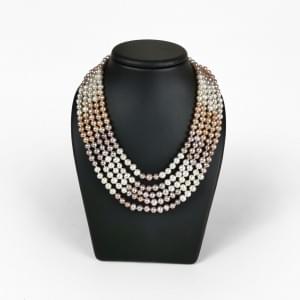 3038. Collier multi-rangs de perles d'eau douce blanches et roses