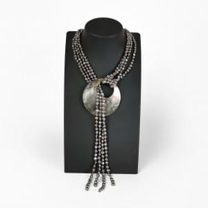 3082. Collier cravate multi-rangs de perles grises retenant un importa...