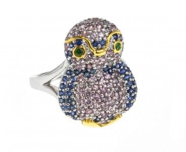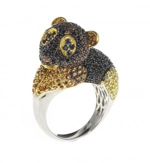 3157. *Bague à motif d'ourson pavé de saphirs multicolores