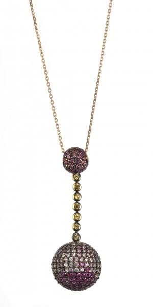 3091. *Collier retenant un pompon de perles de saphirs roses et blancs...