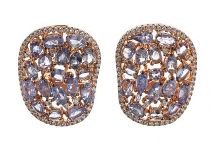 3089. *Boucles d'oreilles ovales ajourées pavées de tanzanites taille...