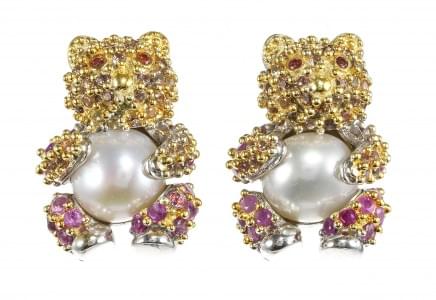 3123. *Clous d'oreilles à motifs d'oursons retenant une perle et pavés...