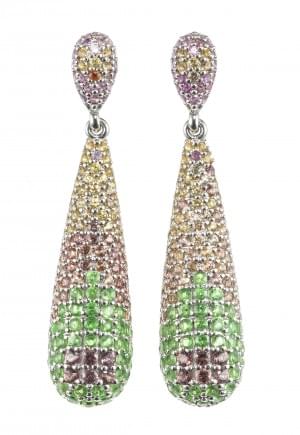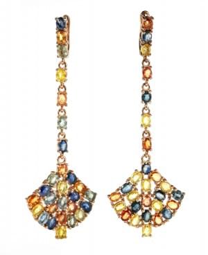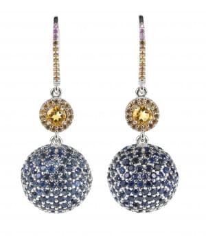 3152. *Pendant d'oreilles en forme de gouttes pavées de saphirs multic...