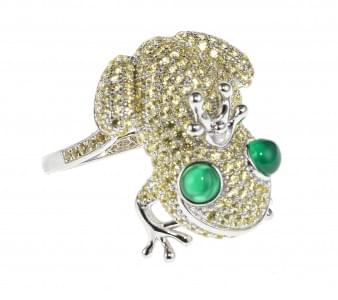 3125. *Bague à motif de grenouille pavée de saphirs jaunes et aux yeux...