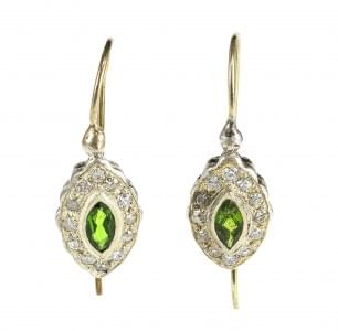 3126. *Boucles d'oreilles serties de diopsides taille marquise entouré...