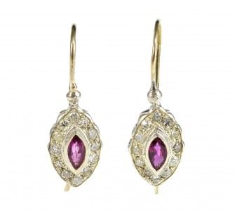 3127. *Boucles d'oreilles serties de rubis taille marquise entourés de...