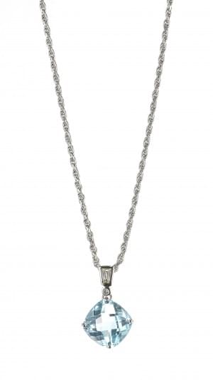 3151. *Pendentif serti d'une topaze bleue facettée rehaussée d'un diam...