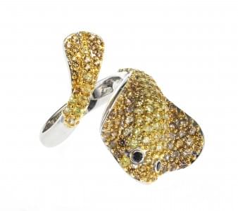 3156. *Bague à motif raie Manta pavée de saphirs jaunes