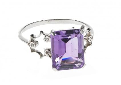 3191. *Bague ajourée sertie d'une améthyste taille brillant (env. 2 ct...