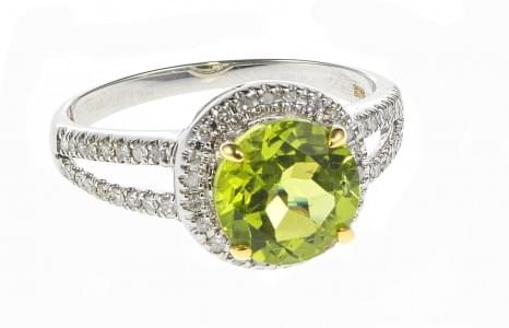 3181. *Bague sertie d'un péridot taille brillant (env. 1,5 ct) sur une...
