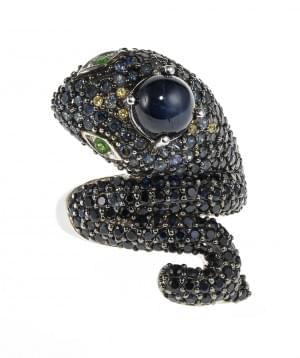 3184. *Bague à motif de serpent centré d'un saphir étoilé cabochon, pa...