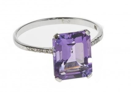 3158. *Bague sertie d'une améthyste taille émeraude (env. 2,8 ct) épau...