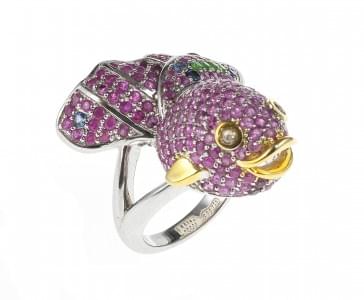 3195. *Bague à motif de poisson pavé de rubis rehaussés de tsavorites...