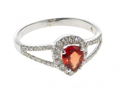 3197. *Bague sertie d'un saphir orange taille poire (0,78 ct) sur une...