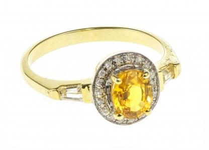 3201. *Bague sertie d'un saphir jaune taille ovale (env. 0,7 ct) entou...