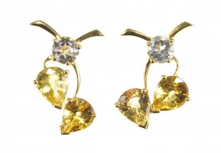 3202. *Boucles d'oreilles à motif de cerises serties de saphirs jaunes...