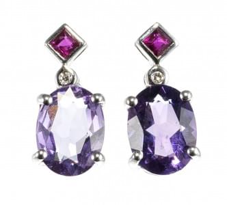 3205. *Boucle d'oreilles retenant une améthyste taille ovale (env. 1,4...