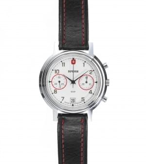La première, chronographe à quartz, à cadran argenté, aiguilles...