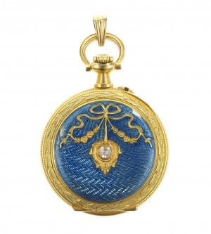 3634. Montre de poche à décor guilloché et émaillé bleu centré d'une r...