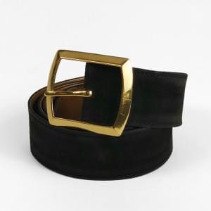 Daim gris foncé, intérieur en cuir naturel, boucle en métal doré...