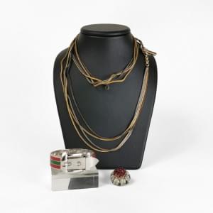 Comprenant un bracelet ceinture laqué rouge et vert signé Gucci,...
