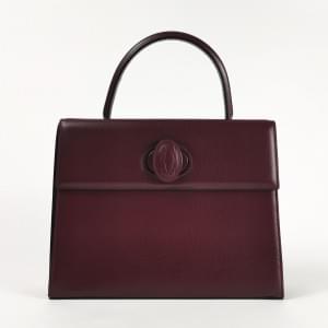 Cuir lisse bordeaux, garniture en métal doré, intérieur en tissu...