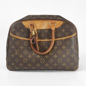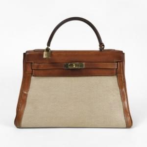 Toile enduite monogrammée, bordée de cuir camel, intérieur en to...
