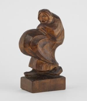 Femme porté par le vent, bois sculpté, signé, H 22 cm