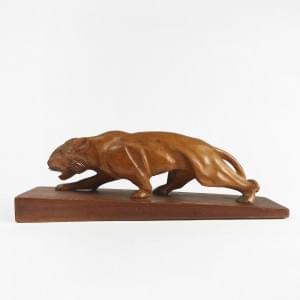 Tigre à l'arrêt, bois sculpté, L 37 cm