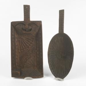 Bois sculpté à décor de deux personnages masculins, L 41 et 42 c...