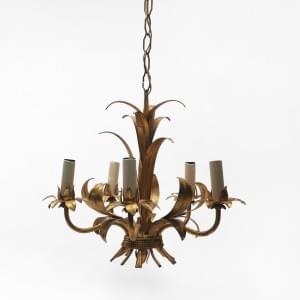 Lustre à décor de feuillage, métal doré, H 37 cm
