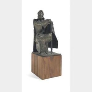 Personnage assis, bronze, signature et numérotation illisibles,...