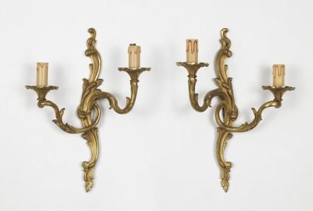 3869. Paires d'appliques à deux lumières de style Louis XV