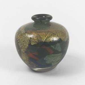 Vase, verre orange à patine rouge et noire, H 17 cm