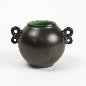 Vase à anses, céramique lustrée noire et émaillée verte, H 11 cm