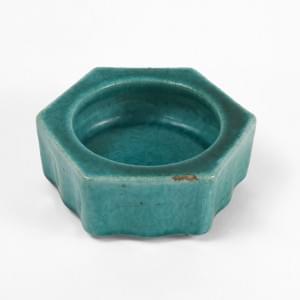 Vide-poche, céramique émaillée verte, signée Lifas, L 14 cm